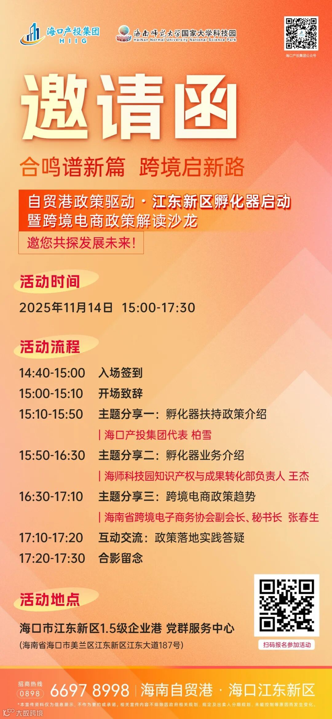 该项目位于海口江东大厦,由海口产投集团统筹运营,致力于打造集“买全球、卖全球”功能于一体的跨境电商产业集聚平台。项目充分整合海南自贸港“双15%”税收优惠、境外直接投资所得税免征、多功能自由贸易账户(EF账户)等政策优势,为企业提供低税率、便利化跨境资金结算的国际化营商环境。
