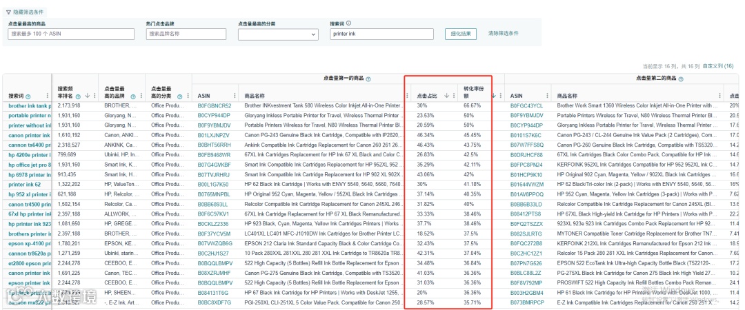 - 巨头垄断流量,中小卖家难突围:以打印机墨盒为例,头部ASIN占据超30%点击与20%转化,盲目竞价等于“炮灰”。