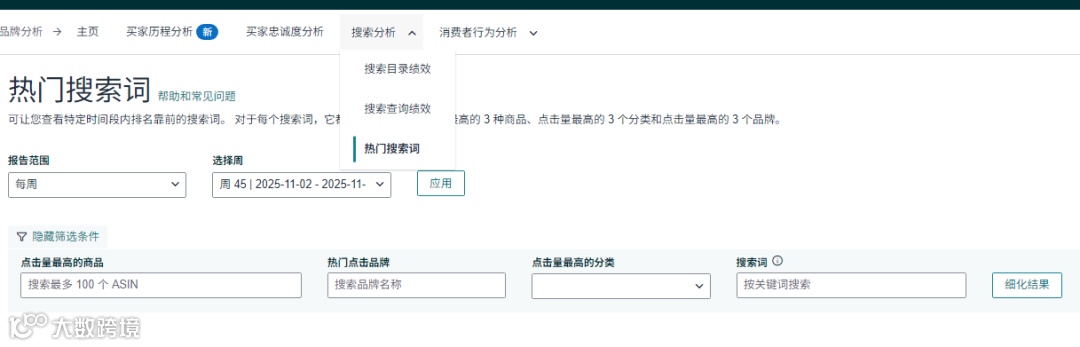 路径:品牌分析 → 搜索分析 → 热门搜索词