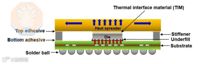 从芯片层级来看,在风冷服务器中,导热界面材料(TIM)覆盖于芯片裸片上,将热量从芯片封装传导至均热板或散热器。