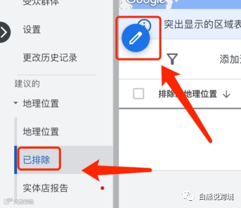 若需排除某些地区,切换至“排除”标签,点击蓝色铅笔图标进行编辑[k]。