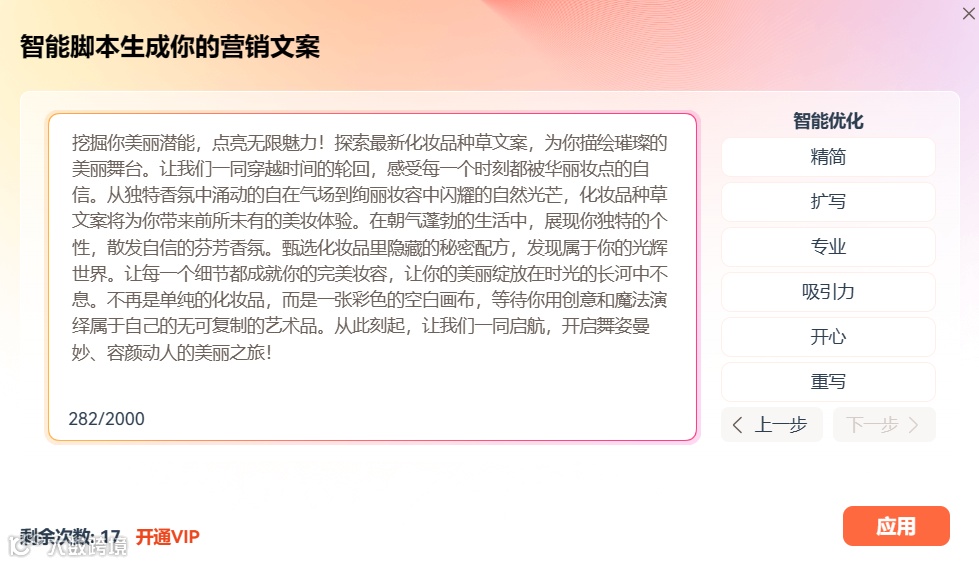 2.AI智能生成文案,在生成的基础上根据需求进一步优化,不满意的话也可以自行编辑哦