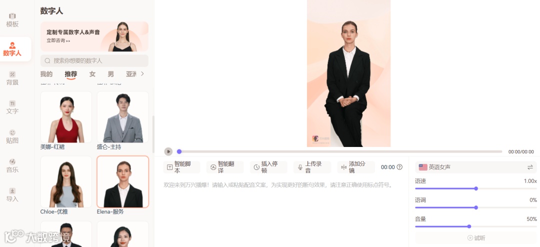 1.挑选符合营销场合的数字人形象,支持定制专属形象