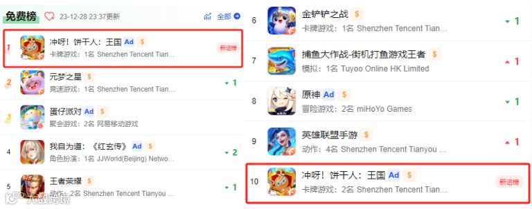 作为腾讯2023年最后一款重点手游,加之宣发量级不高,《饼干人王国》整体表现中规中矩。