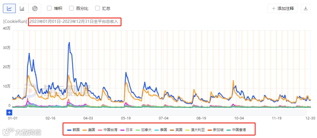 2023年《CookieRun: OvenBreak》全球各市场双端流水变化