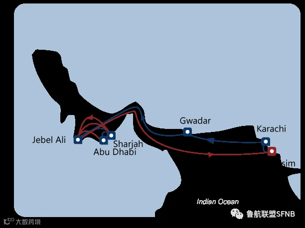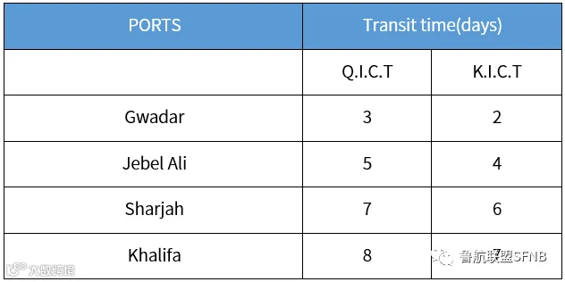 2018年3月7日,中远海运集运开通“卡拉奇瓜达尔中东快航”(KGS线),挂靠QICT、KICT和GITL,成为连接巴基斯坦与波斯湾(如迪拜)的重要定期航线,也是COSCO唯一挂靠瓜达尔港的航线[k]。
