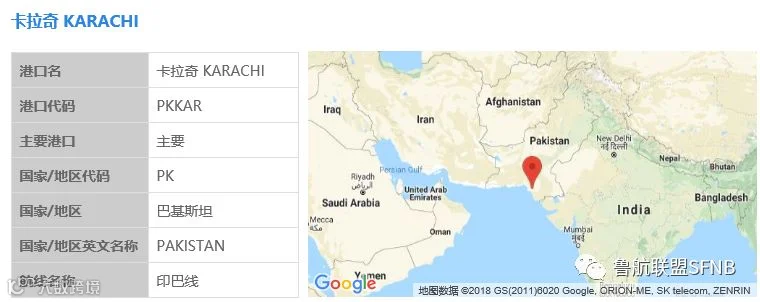 卡拉奇港(Karachi)位于印度河三角洲西北部,濒临阿拉伯海,是巴基斯坦第一大城市、信德省省会,也是全国最大的海港、军港及工商业、贸易与金融中心,承担全国95%以上的外贸物资运输,并处理阿富汗部分进出口货物[k]。