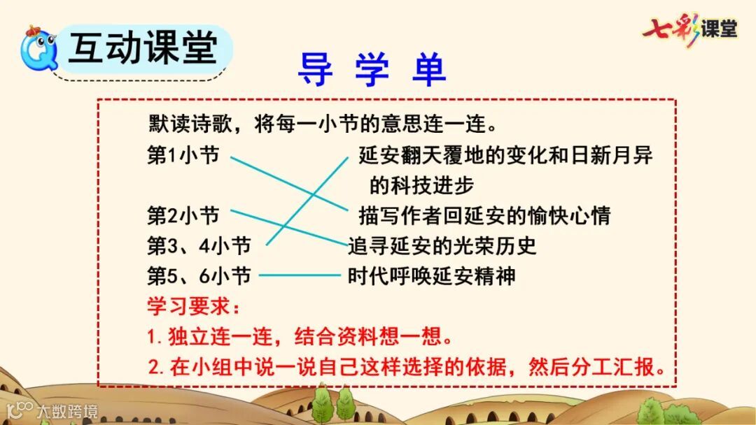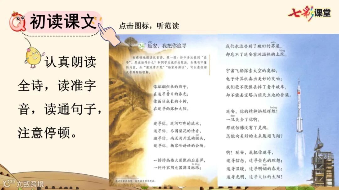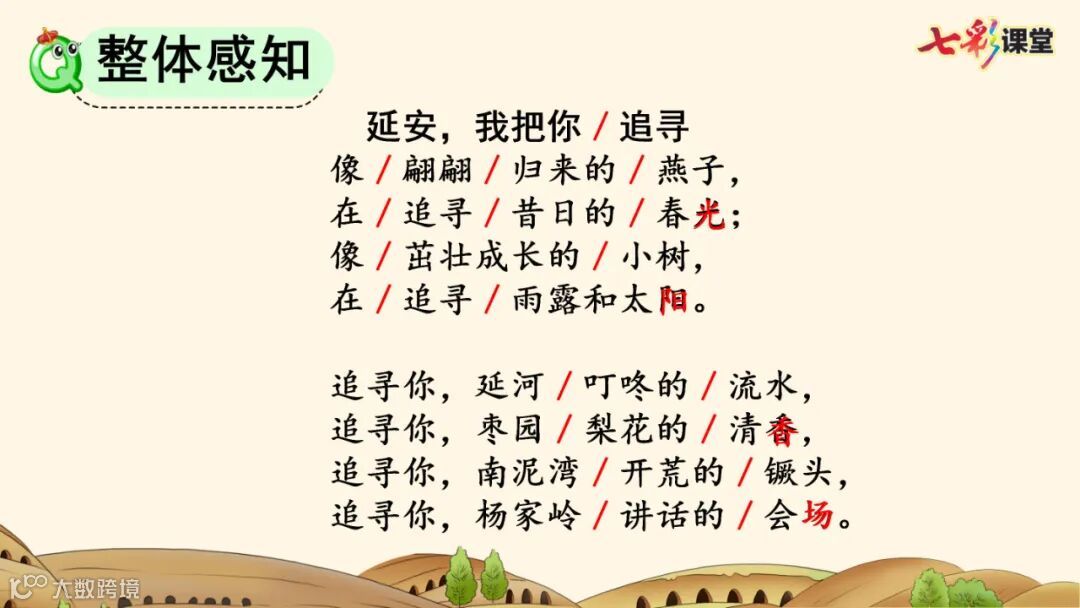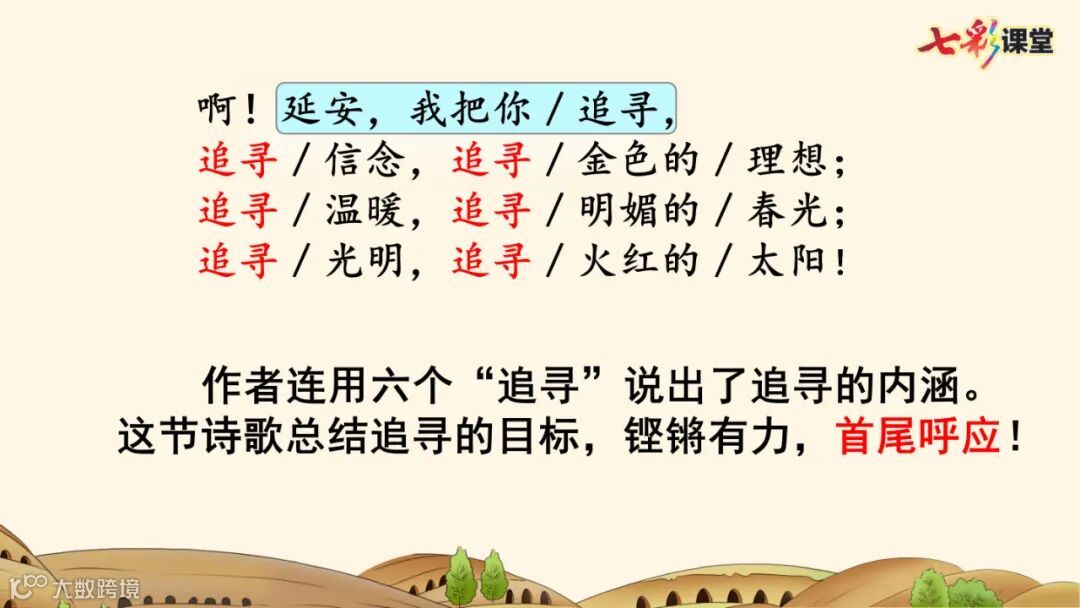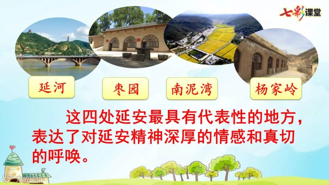 本课是一首诗,诗的第一、二两节写对延安精神的追寻,第三、四两节写实现现代化需要延安精神,第五、六两节写追寻延安精神的重要意义。该诗表达了作者对延安精神的赞扬和对人们在现代化建设中继续发扬延安精神的希望。