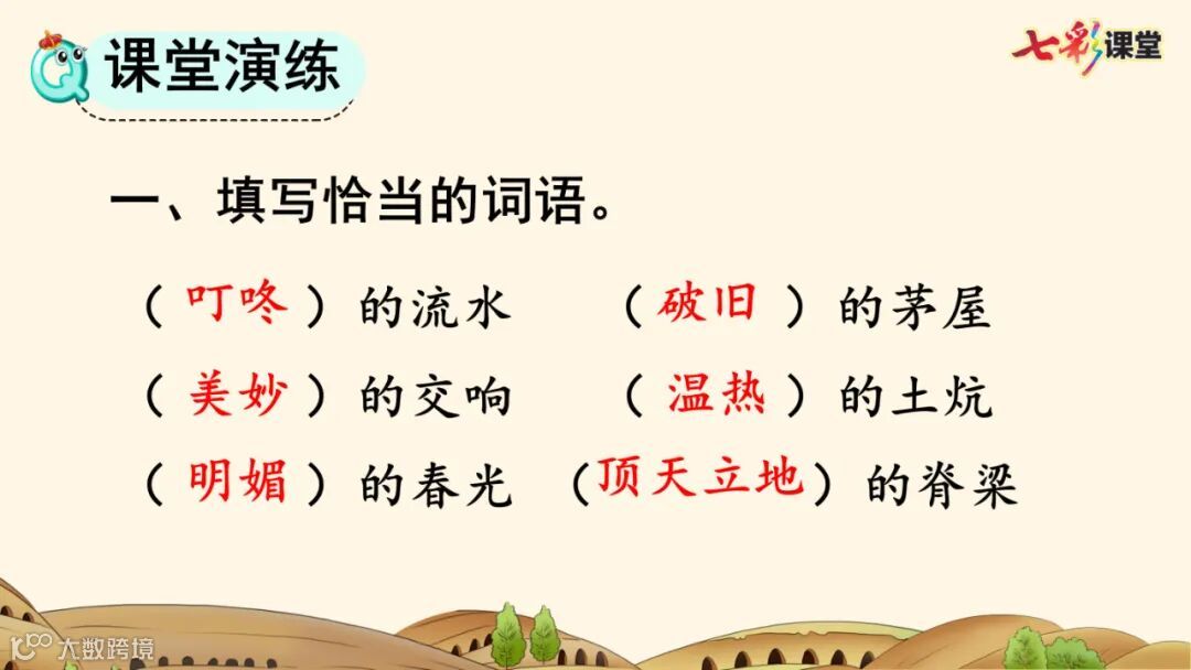 二、茁壮成长 破旧 温热;美妙 明媚 火红