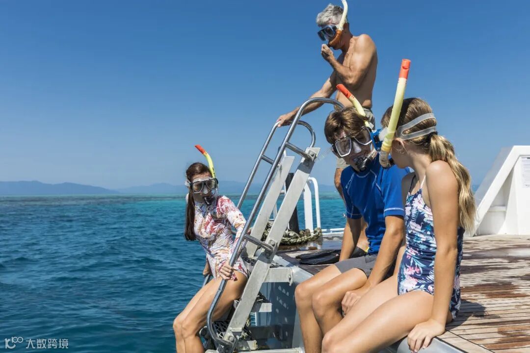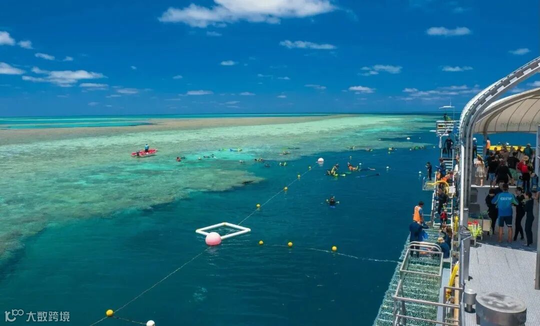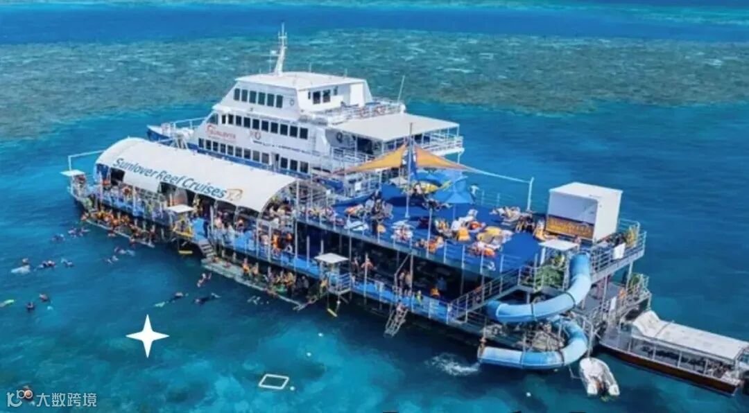 📌大堡礁出海:游船往返一日游。整个游船就像一个移动的水上乐园,开到大堡礁后停下。