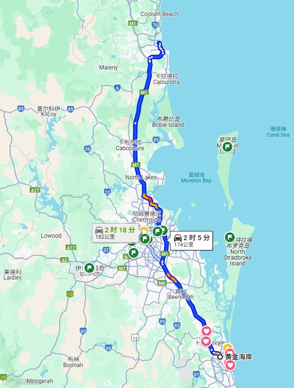 总体来说,黄金海岸城市不大,游玩项目集中、交通顺畅,不管去哪儿,基本都是20-30分钟车程,自驾公交都便捷。