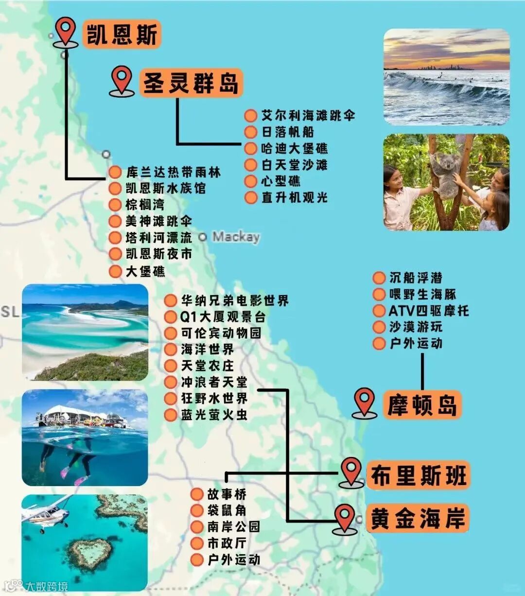 (昆士兰州的景点分布图)