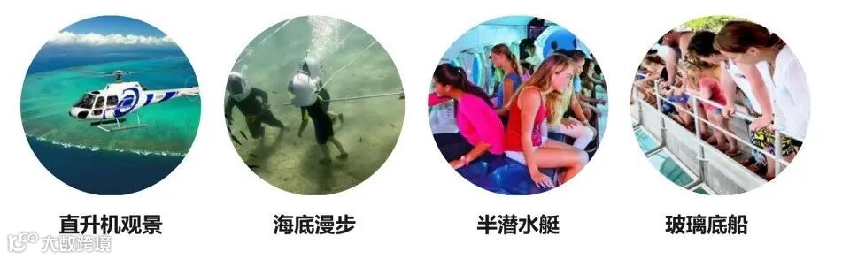 📌哈迪大堡礁:一日游。游船早上8点出发游玩,船去船返,一整天,船票含浮潜工具、半潜水艇、水下观景台、深潜、自助午餐等项目。