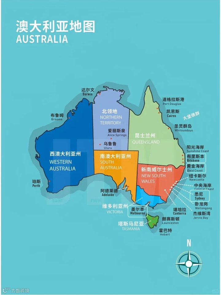 墨尔本(维多利亚州):像北京,名校繁多,是整个澳洲的文化和教育中心;