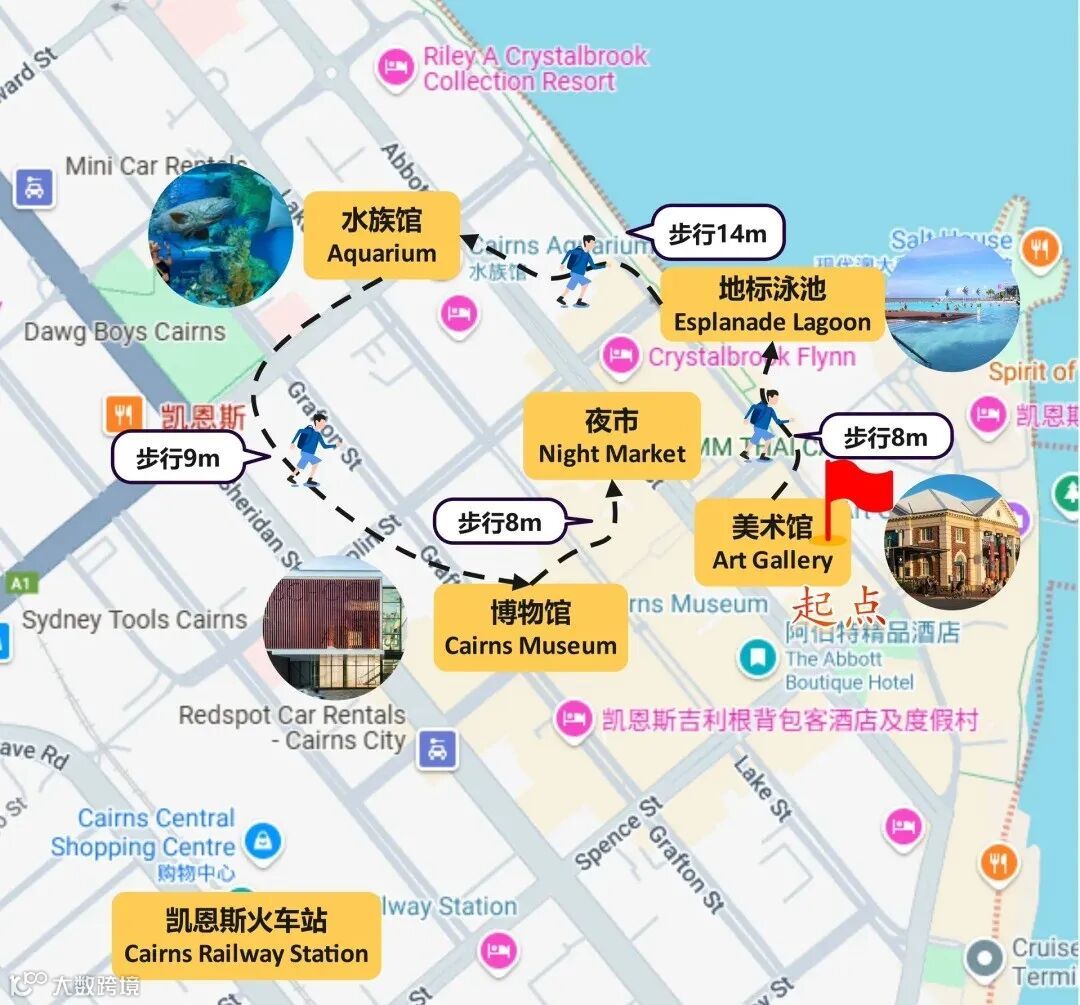 📌市区闲逛CityWalk:市区不大,美术馆-泳池-水族馆-博物馆-夜市,可以一路悠闲逛下来(见下图)。