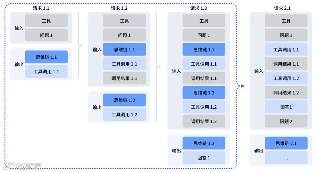 - 开始下一问题时(请求2.1),应删除前序思维链,保留其他上下文发送给 API。