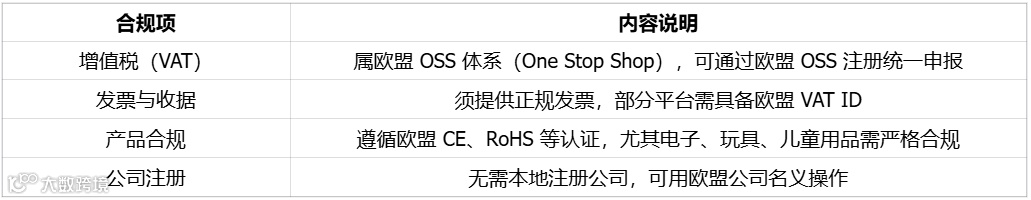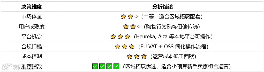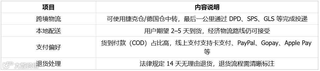 - 入局路径:建议使用捷克或德国仓备货,辐射斯洛伐克、奥地利、匈牙利市场,实现区域协同配送。