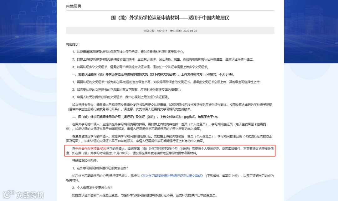 适用于境外学习时间超过6个月(180天)并获得学位的留学生。(主流选择)