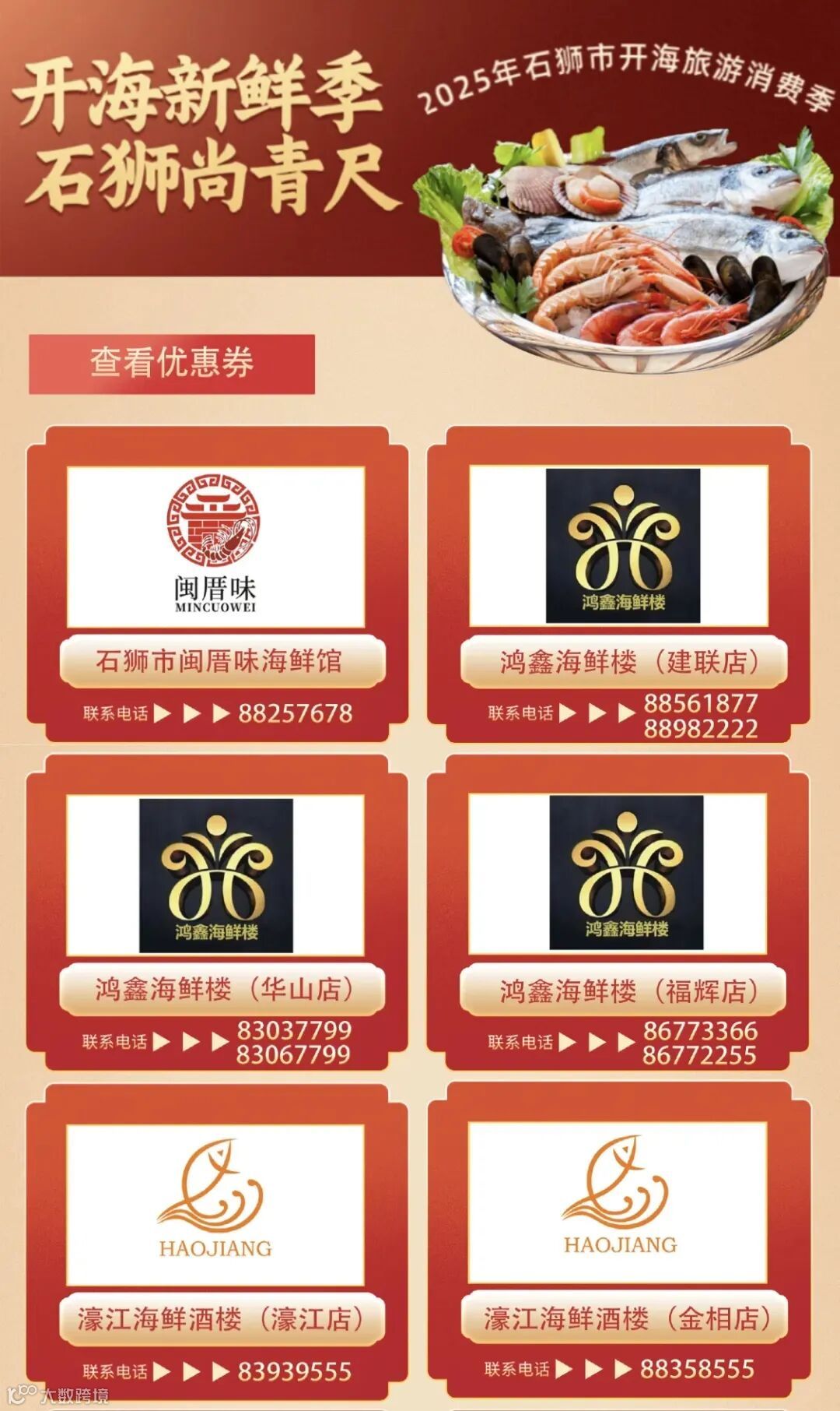 “石狮请你吃海鲜”活动将持续至9月26日!全市多家知名海鲜酒楼联合送出总价值500万元餐饮消费券,满额立减,畅享海鲜盛宴!另外,今年国庆中秋期间,康宴·追光餐厅将打造“云端光影之宴”,民谣与摇滚之夜搭配精致美食,为广大群众带来视听味三重享受!