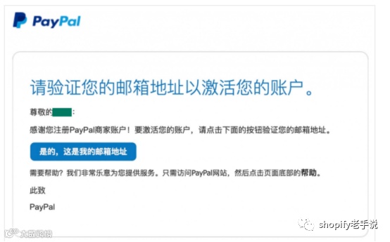 4. 回到邮箱,继续查看PayPal给我们发送的邮件,还有一封邮件如下图所示,要求我们验证注册PayPal账户的邮箱地址以激活我们的PayPal账户。
