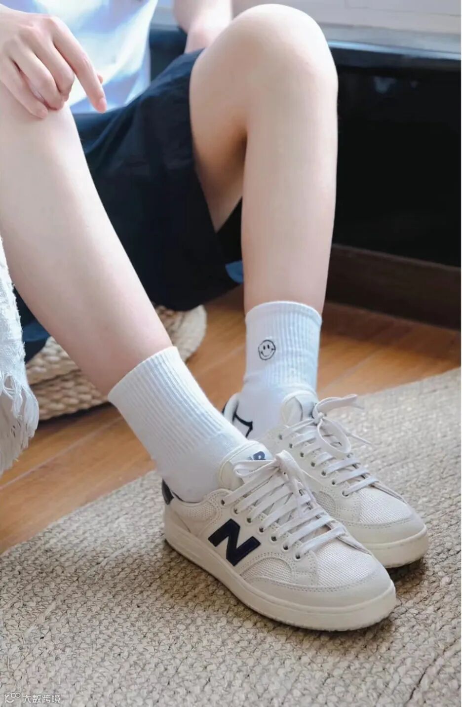 明亮的奶油色,加上雾霾蓝的“N”字鞋标点缀,塑造出“奶油海盐”的复古型格。