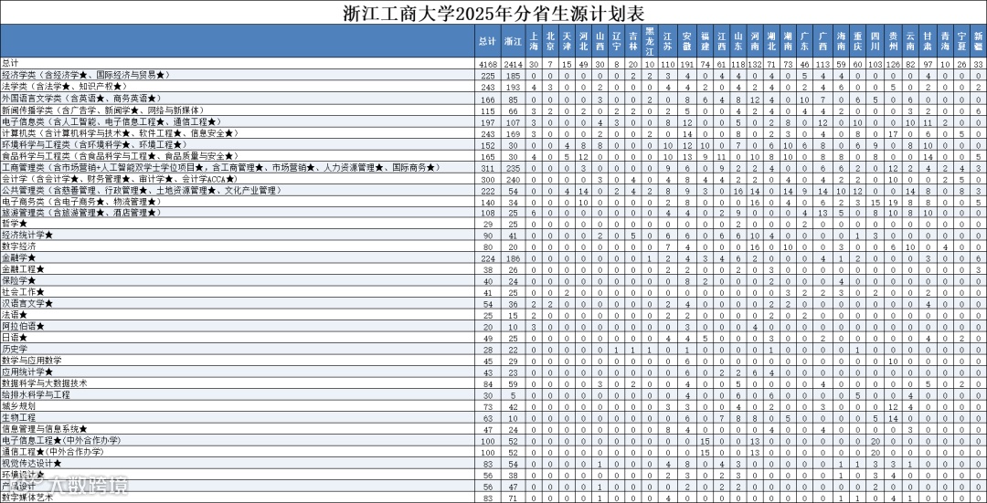 3.工商管理(数字管理拔尖人才创新班)、经济统计学(拔尖人才创新班)、经济学(拔尖人才创新班)、旅游管理(数字文旅创新班)、投资学(资产管理创新班)、信息管理与信息系统(大数据管理创新班)、电子商务(跨境电商与商务智能创新班)、行政管理(数字治理创新班)、金融学(普惠金融创新班)等9个创新实验班仅在浙江省招生。