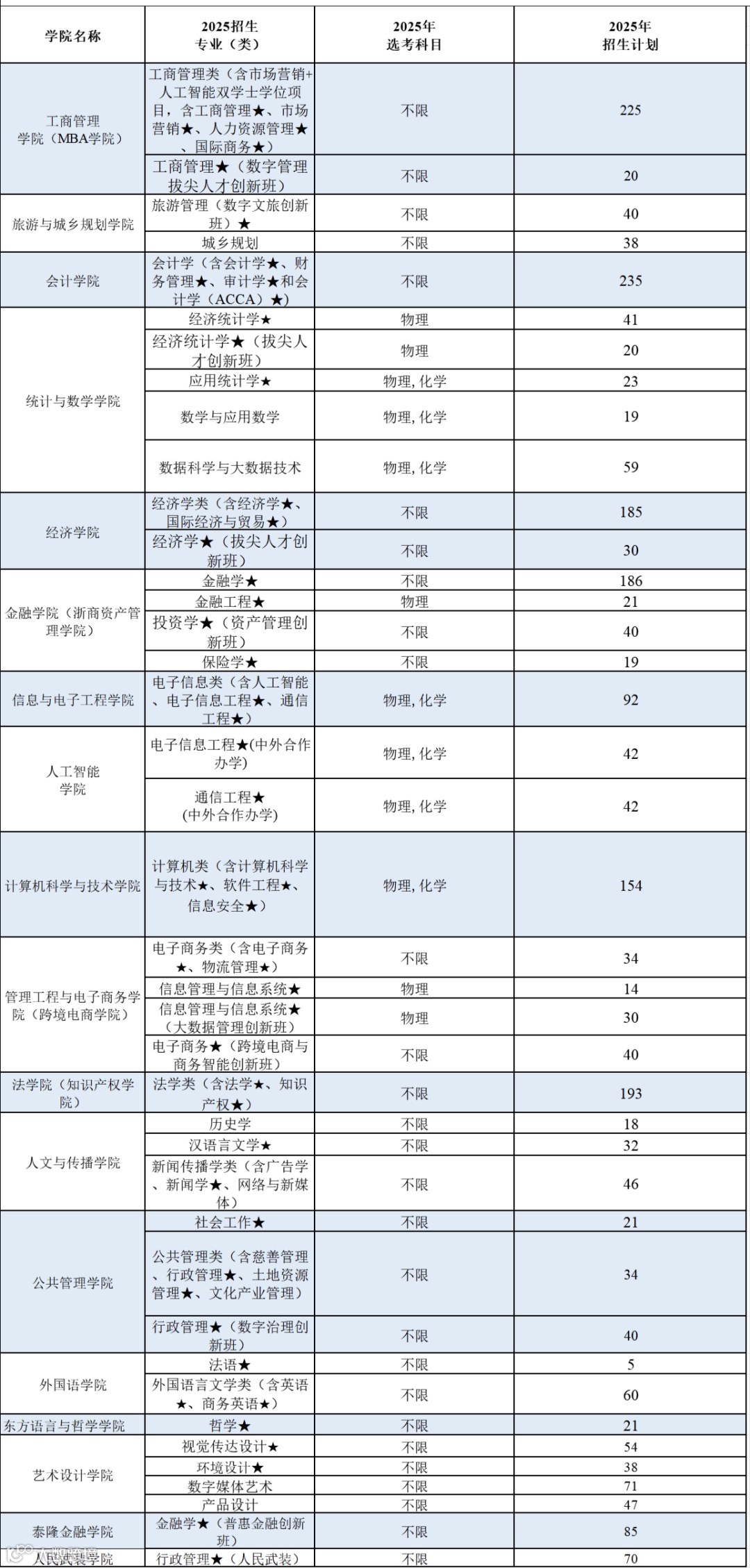 2.此表不包含部分只在浙江省招生的创新班。
