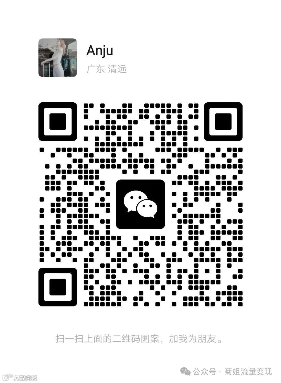 文章底部,识别二维码,加我微信,也可以关注我的公众号:菊姐流量变现