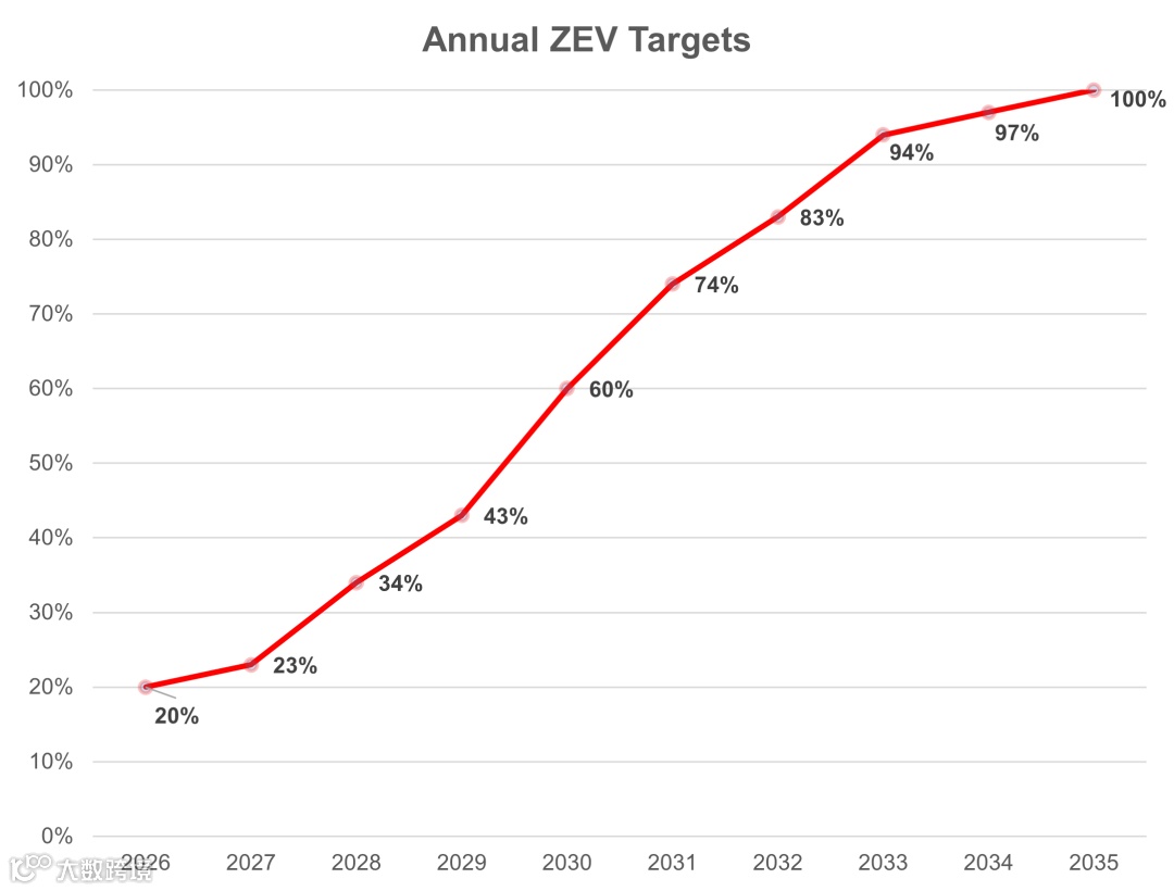 今年9月,英国已经推出了一项类似的电动汽车销售令,其时间框架目标也与加拿大的新规类似,包括到2035年实现100%的新销量目标。