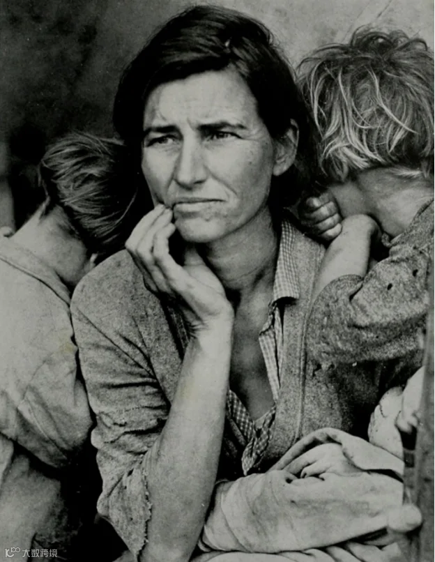 多萝西娅·兰格专注于迁徙工人的问题,记录了那些被强行赶离土地的人们跨越国土的长途迁徙,这段史诗般的苦难历程后来被约翰·斯坦贝克(John Steinbeck)写进了他的小说《愤怒的葡萄》(The Grapes of Wrath)中。尽管作家与摄影师素无交集,但两者的作品却相互映衬,彼此补充。帕尔·洛伦兹(Pare Lorentz)在1941年的《美国摄影》(U.S.Camera)指出: