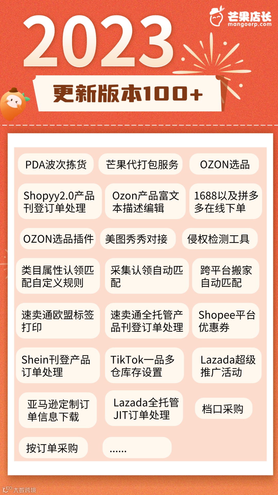 这其中大部分在2023年都跑得非常不错,对应的芒果店长ERP功能也同步在大量卖家使用的基础上获得了极大的提升。