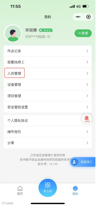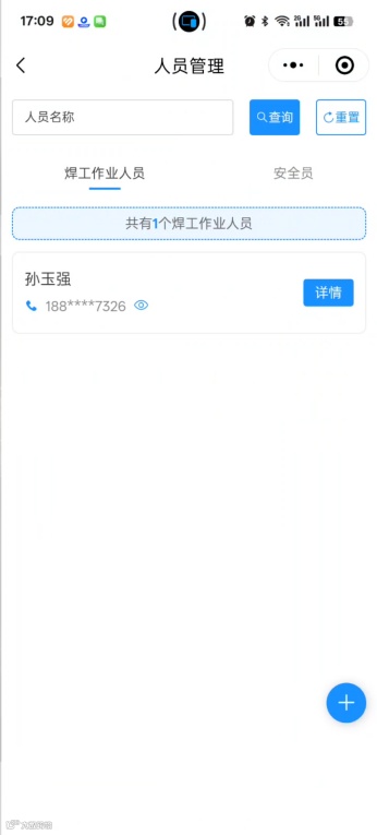 点击【人员管理】,可查看并搜索本项目的安全员信息与焊工作业人员信息。