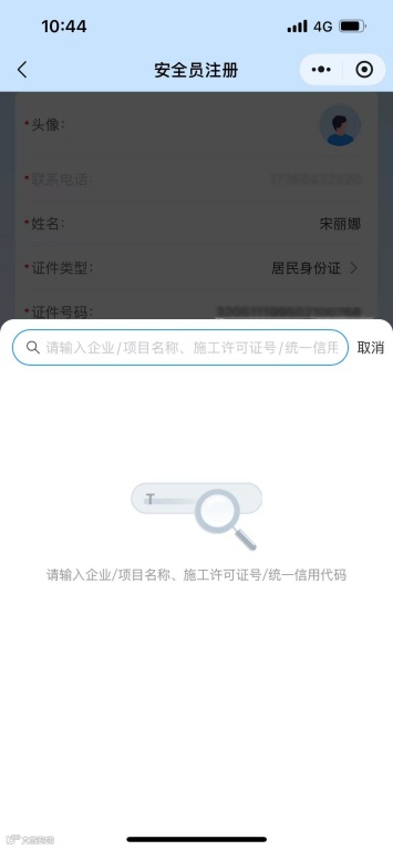 第二步:在安全员注册页面输入【姓名】与【身份证号】。