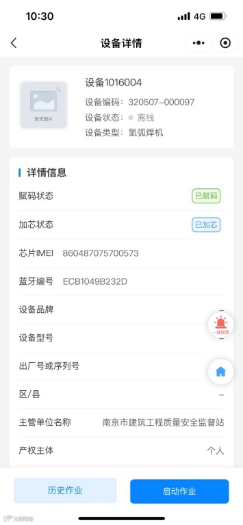 第二步:在设备详情页点击【启动作业】,进入开始作业前的作业单页面。