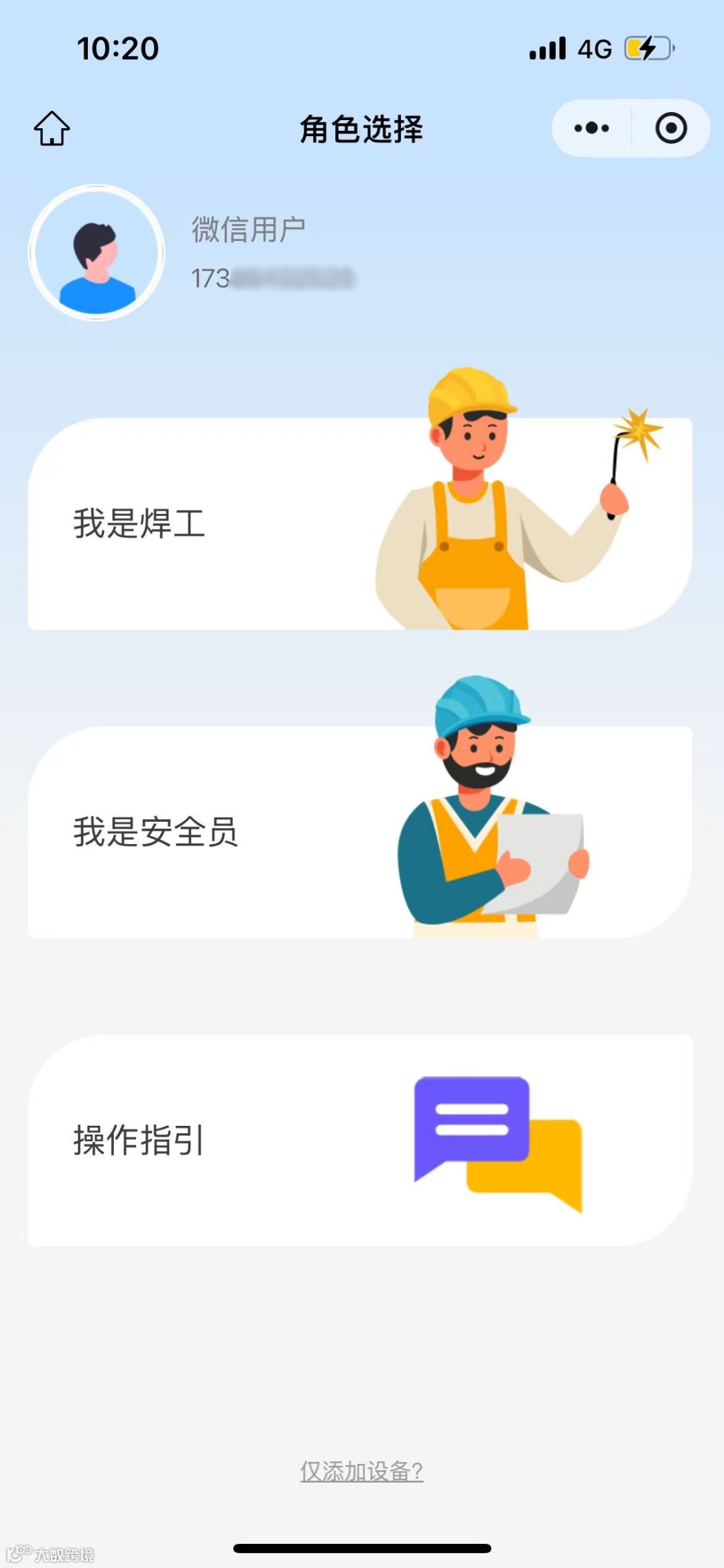 若您已在系统中注册为焊工,可在手机上扫码启动焊机。扫码作业过程分为五步。
