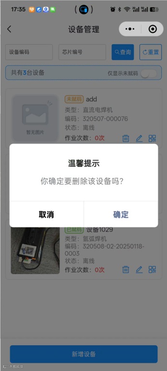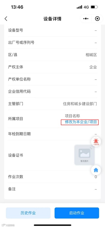 若焊机所属项目非本项目,可在设备详情中点击【修改为本企业/项目】,修改至本项目。
