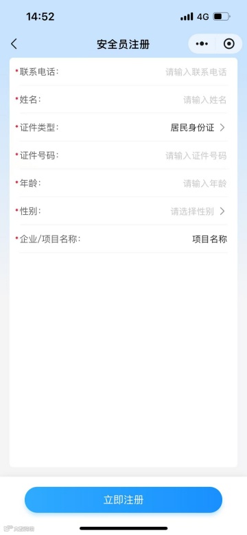 第一步:点击【我是安全员】,进入安全员注册页面。