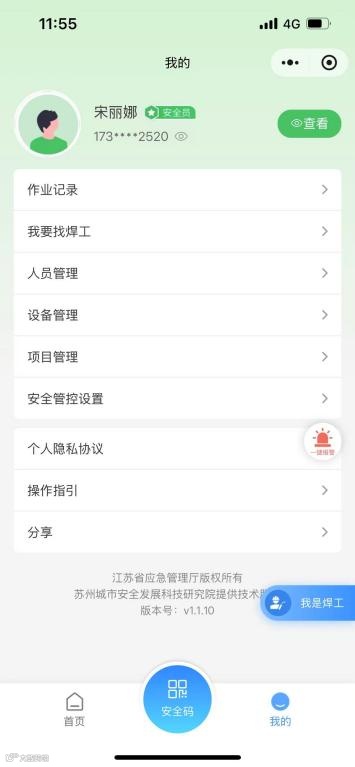 在整个作业过程中,可点击系统悬浮【一键报警】进行紧急呼叫,一键呼叫至110或119,系统将自动将呼叫信息推送到项目联系人及监管部门。