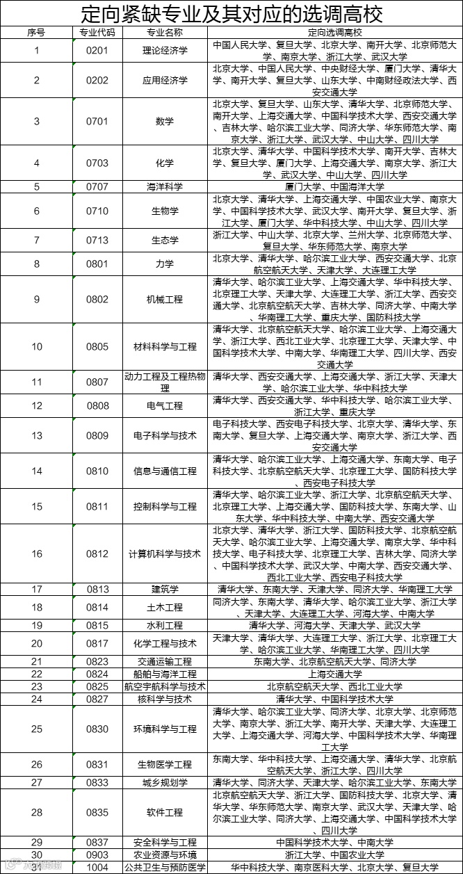 定向部分高校选调31类紧缺专业开展选调,计划共226名。
