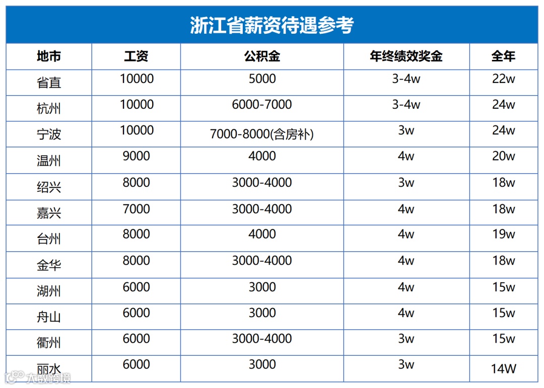 网友:温州乡镇,每月7000多,还有1000的驻村补贴。年终时高时低,去年算比较低的拿了2w多,其他经济强一点的乡镇年终能有四五万。