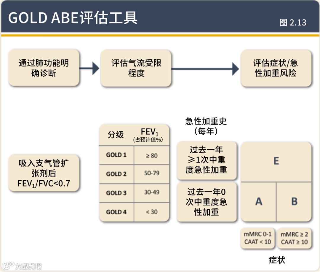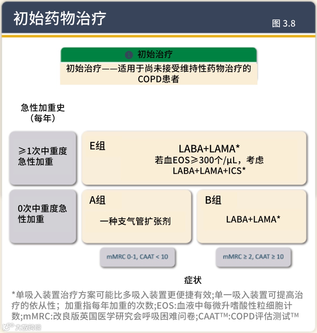 2. 基于观察性研究证据,调整了GOLD A、B、E分类标准,将“一次中度急性加重”作为治疗升级的关键阈值,旨在实现“无急性加重的低疾病活动状态”。