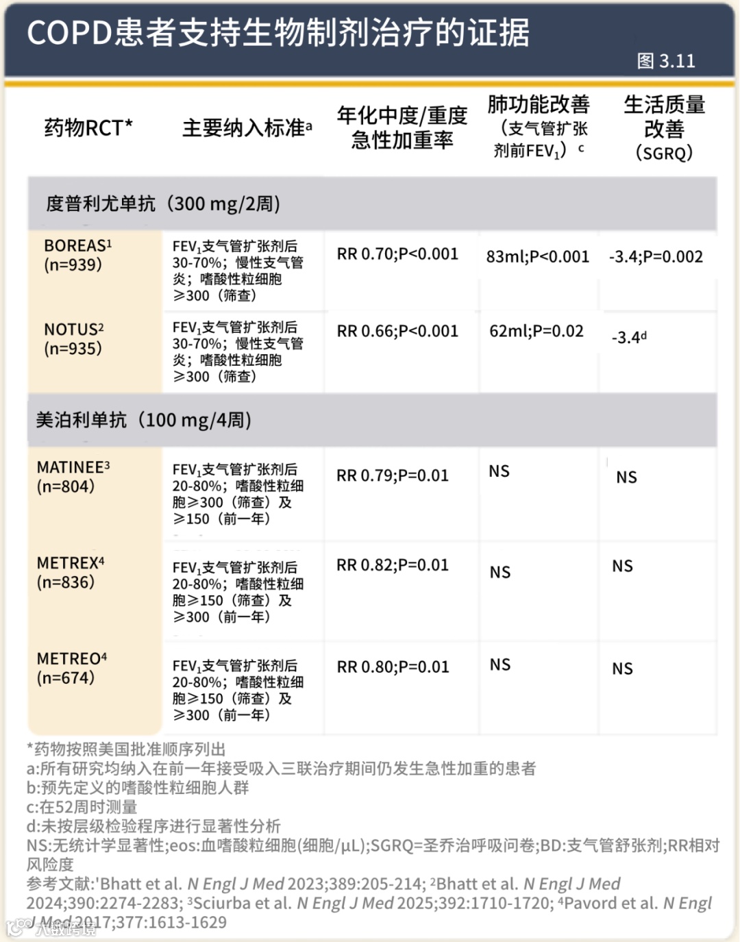 4. 新增图3.11,系统阐述了生物制剂在COPD中的应用证据。