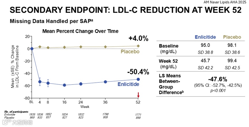 图 4 CORALreef Lipids 研究次要终点分析结果
