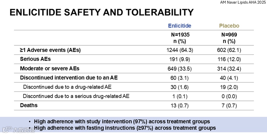 作为慢病治疗药物,安全性备受关注。降脂药物中相对常见的不良反应包括肌痛、肝脏毒性等。此次公布的两项研究结果显示,Enlicitide 不良反应发生率低,且未观察到剂量依赖性增加的不良事件,治疗组间也未出现不良事件的总体趋势,表现出良好的耐受性和安全性。这有助于患者在治疗过程中保持较高的用药连续性,从而间接提升治疗依从性。