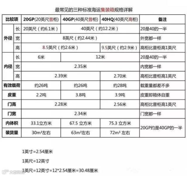 - 普通柜高度(20GP/40GP):8.5英尺 = 2.59米[k]