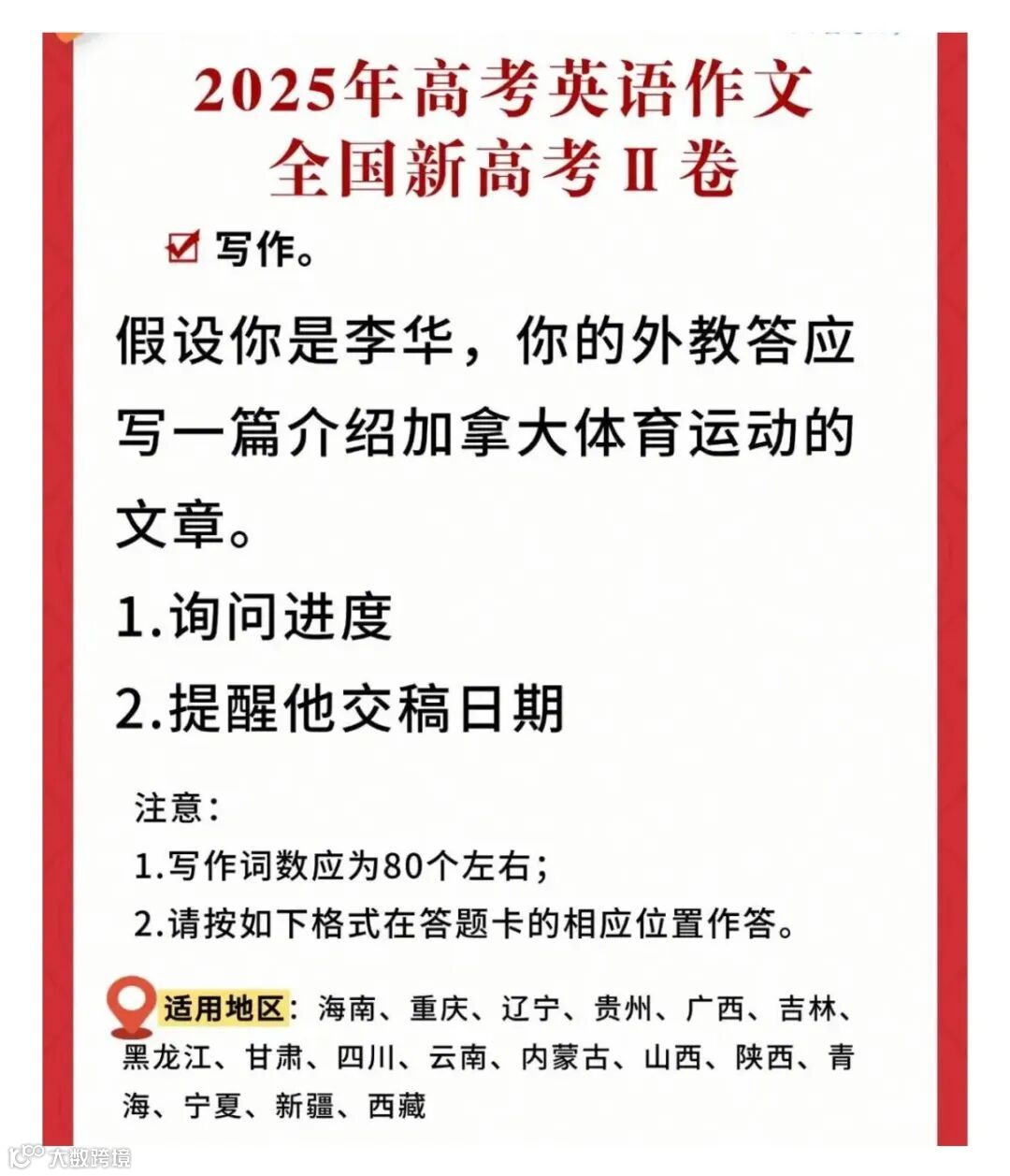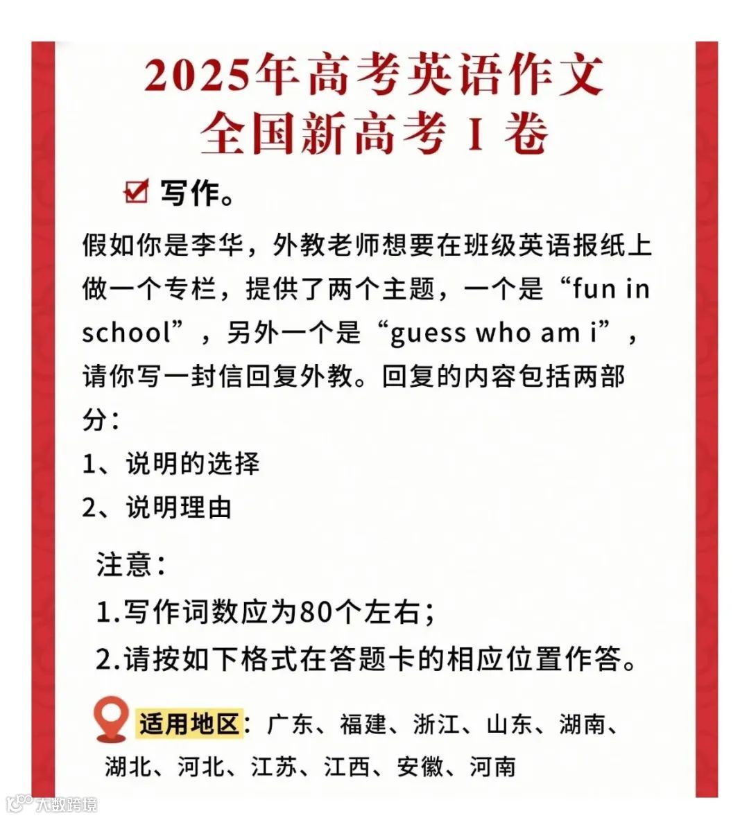 2025全国高考英语作文真题(含新高考一卷、二卷)