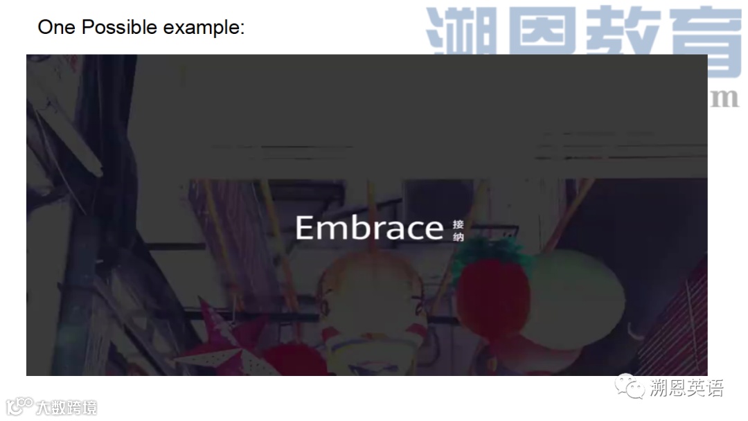 T: very good. of course right? The key word here diverse cultures, so definitely they will talk about the cultures. (马老师把它转化为What kind of things show the diverse culture?因为稍难,所以板书在下方)Thank you very much. Good question. 接着请另一个学生。