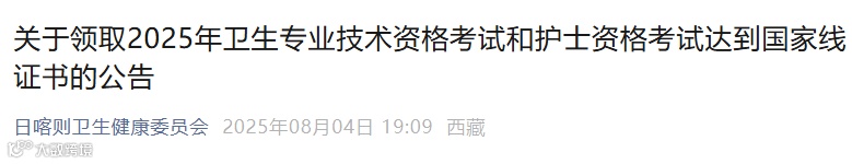 为做好2025年全国卫生专业技术资格考试和护士资格考试达到国家线证书发放工作,现将有关事项公告如下: