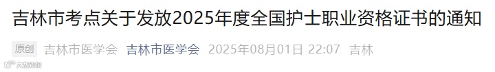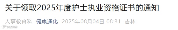 2025护士/卫生资格考试资格证书,目前已公布领取方式地区:陕西、河北、广东、吉林、西藏山南市,又新增9个新地区,山东泰安、滨州,吉林省吉林、长春、通化,及陕西卫生资格证书领取通知如下: