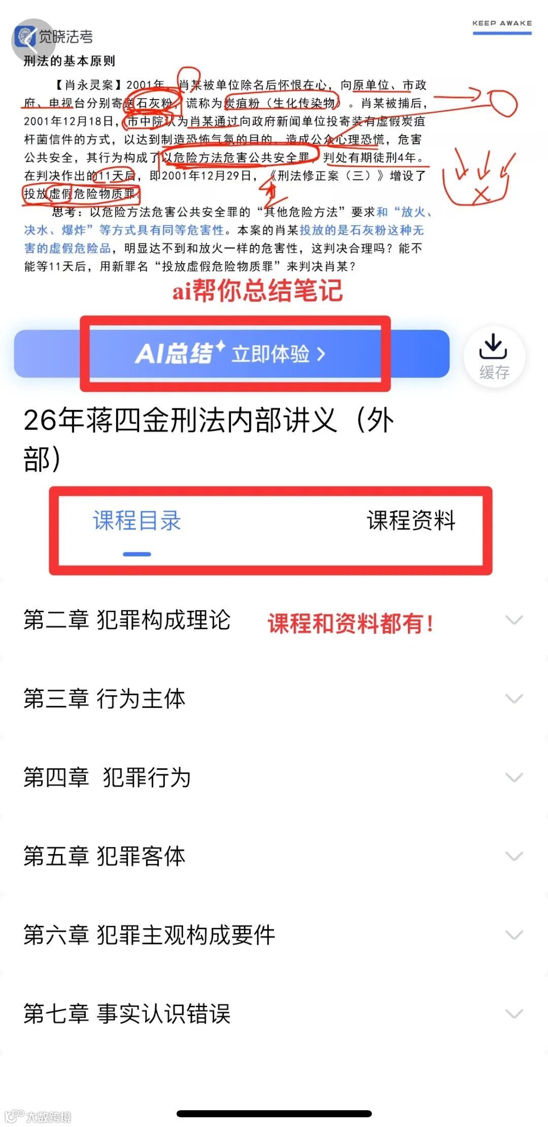 注意:26年蒋四金刑法内部带读课及内部讲义已经上传至觉晓法考APP,0基础/基础差的都可以跟!